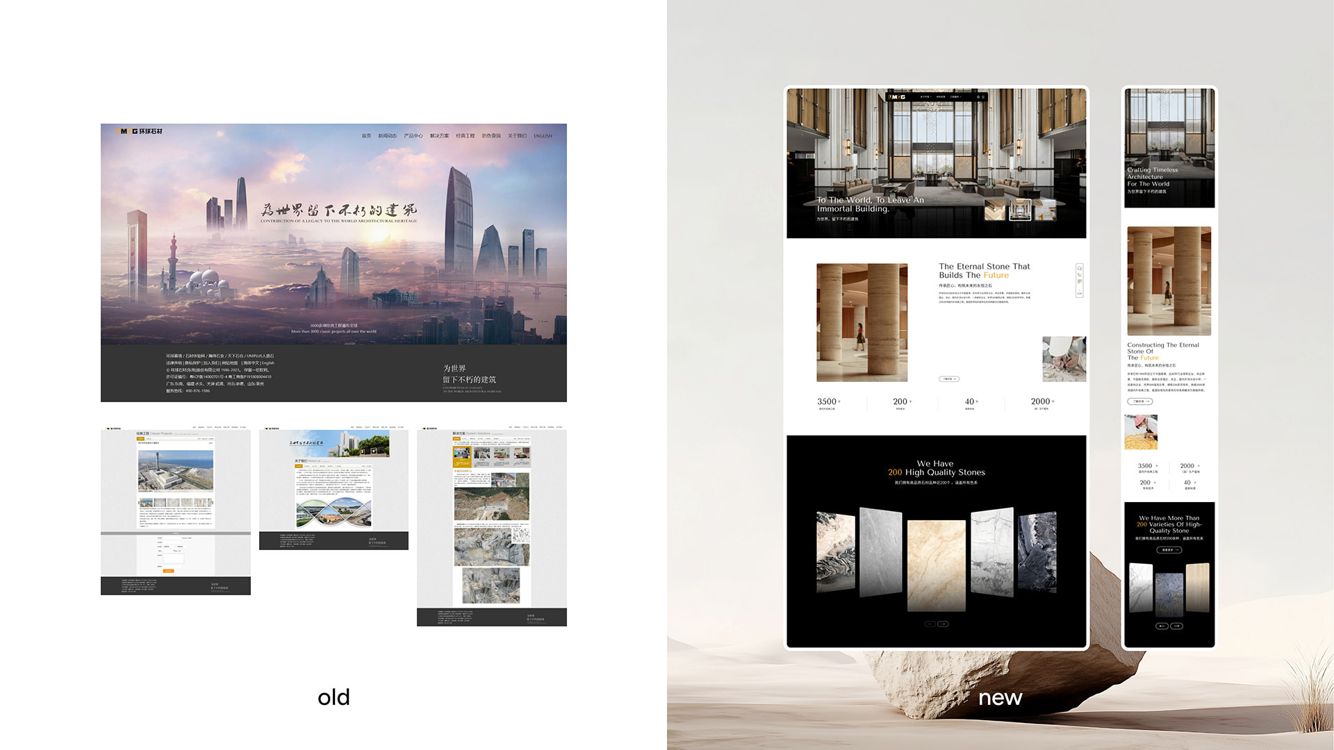 环球石材1986年创立于中国香港,央企华润建材科技(1313.HK)入股企业,中国驰名商标,国家高新技术企业。拥有山东莱州、河北承德等优质矿山,福建、天津、东莞、山东四大天然石加工基地,东莞常平、广西来宾两大自动化人造石生产基地,服务网点覆盖全国主要城市,业务遍及全球,是领先的装饰石材系统解决方案提供商。